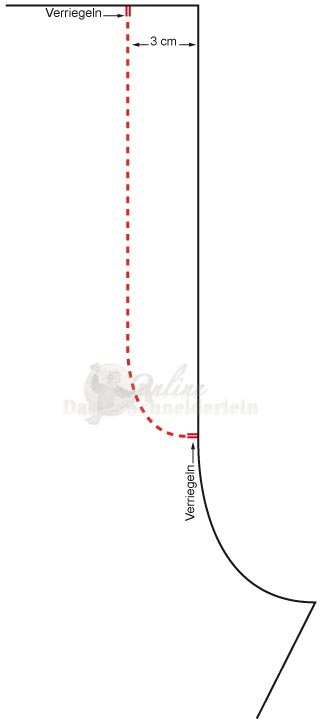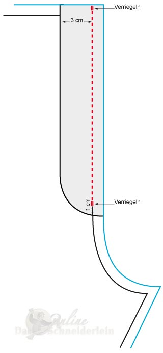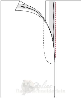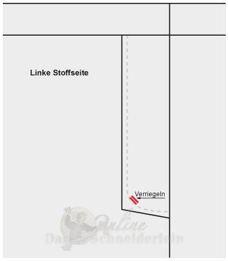 9. als letzter Schritt wir der Schlitzuntertritt mit dem Schlitzbeleg von links durch eine Naht verriegelt. (Zeichnung)